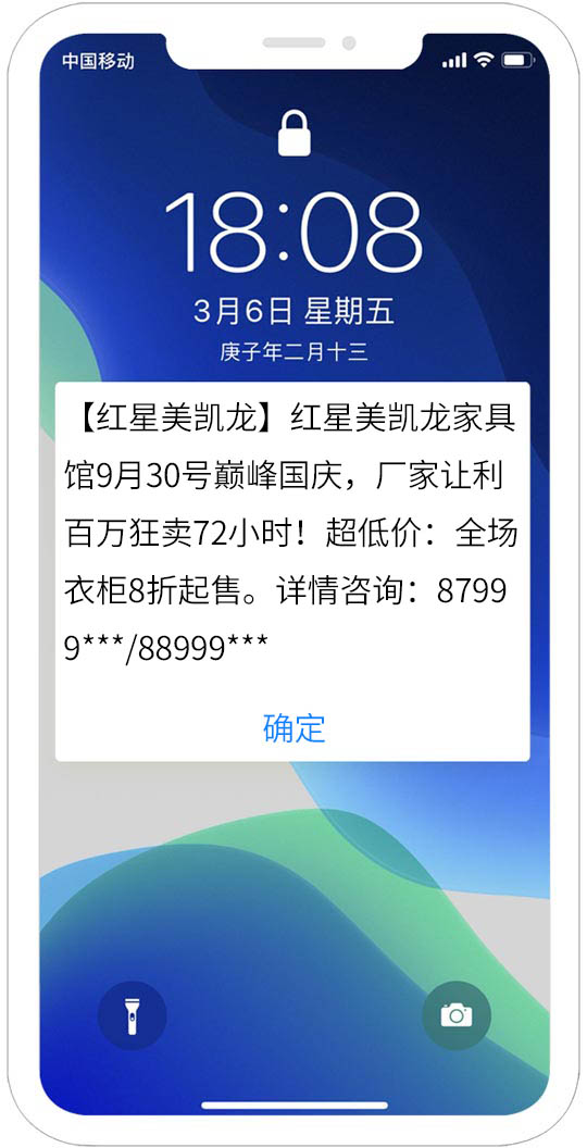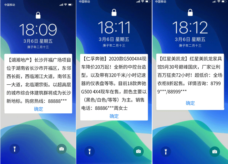 閃信群發(fā),高到達(dá)率,高閱讀率,低攔截率,閃信彈屏、直接閱讀,短信內(nèi)容不留存手機(jī),精準(zhǔn)推送,無(wú)攔截?zé)o打擾、閱后即焚。